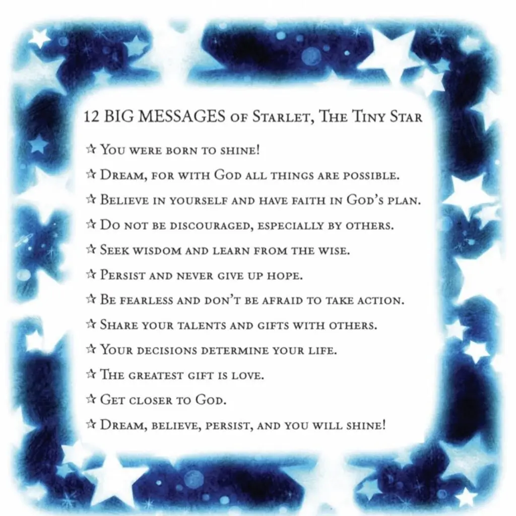 This story illustrates how we don't ever know our importance in the world until our eyes are opened to our life mission. This tiny star was important for the baby Jesus and the world to be able to have light to see.
