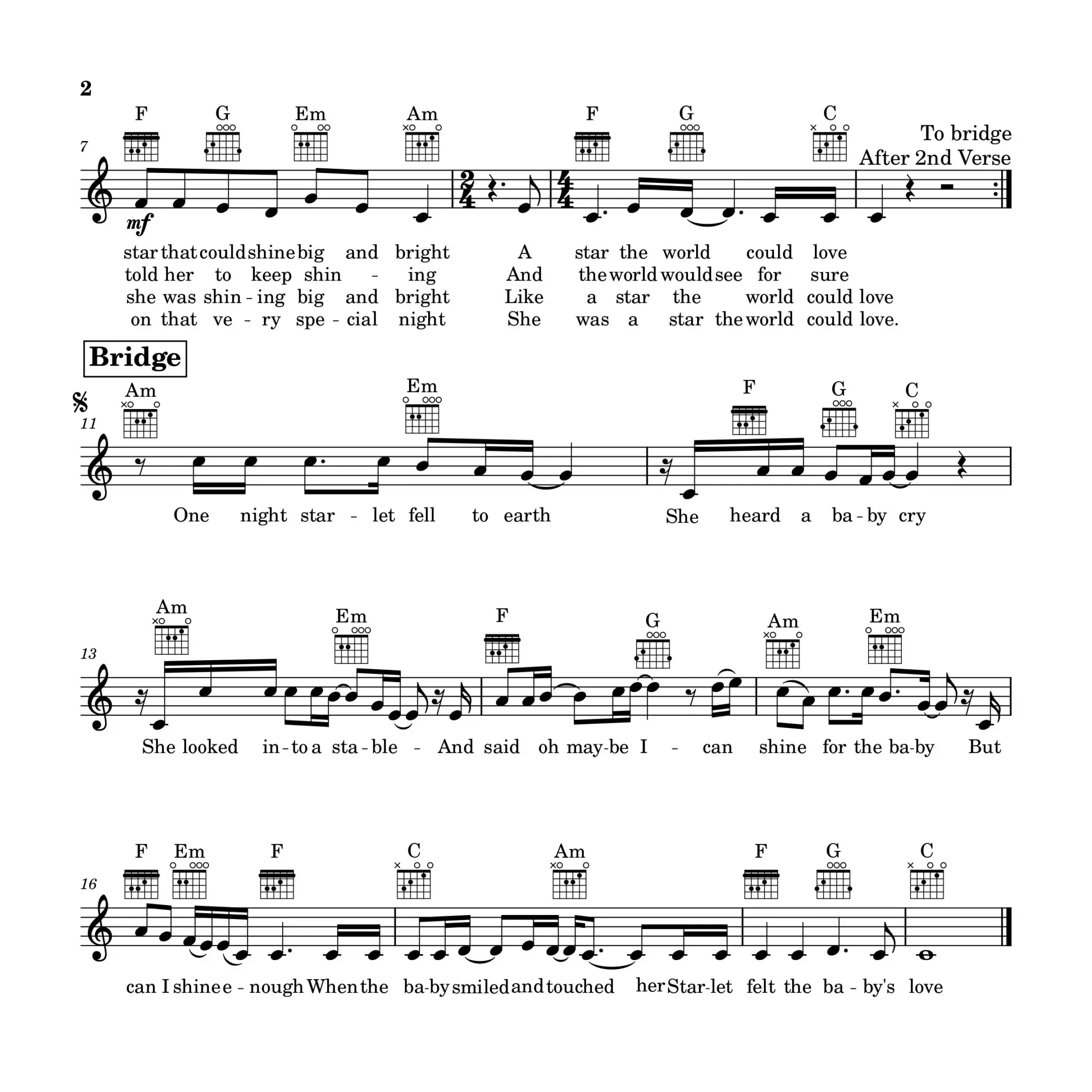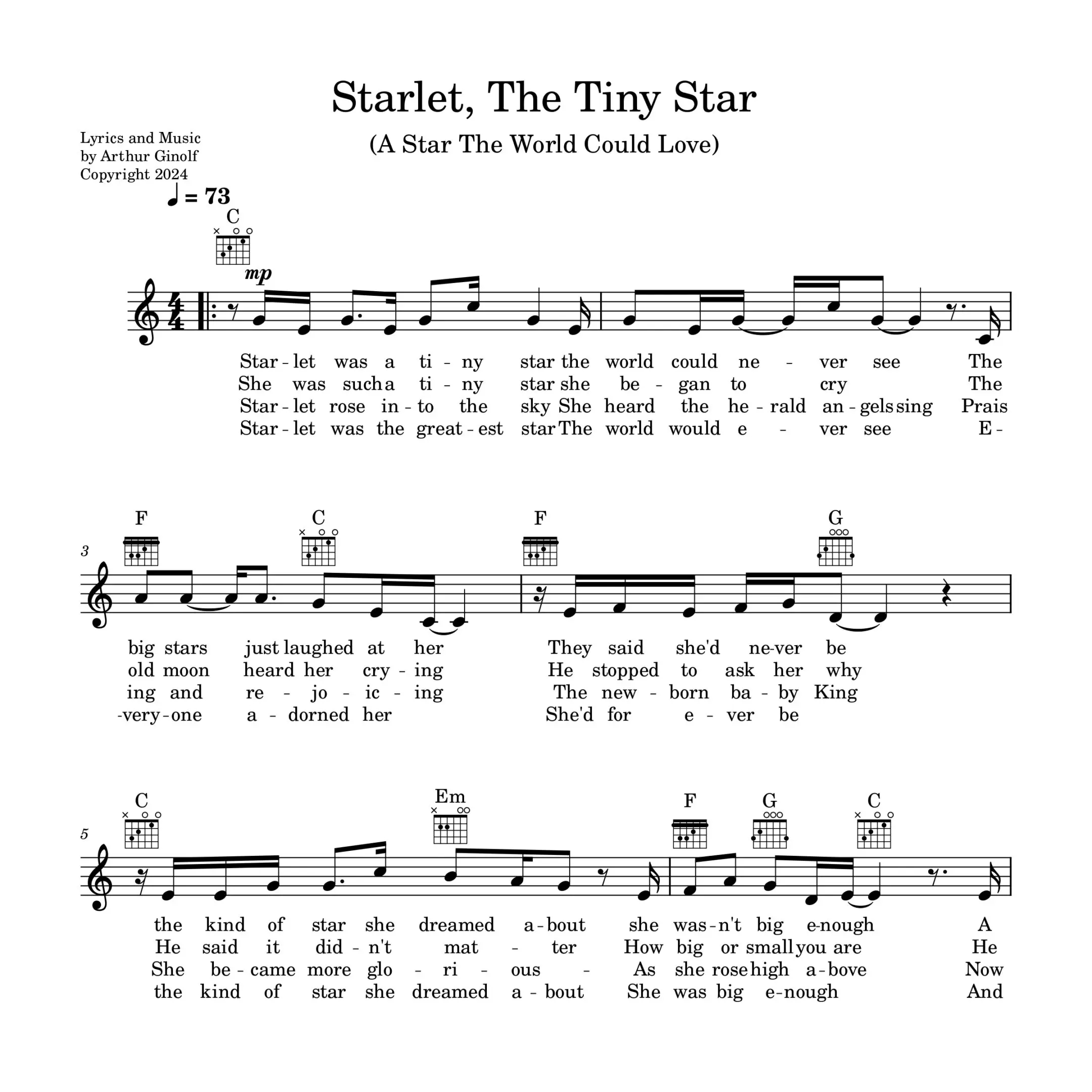 Starlet, The Tiny Star includes the sheet music and lyrics to the brand new Christmas song.